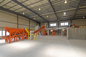 施設面積は、697?で、投入ホッパーは1.8?の容積を持ち、瓦は、約2000枚で10t比重1.4程度になります。